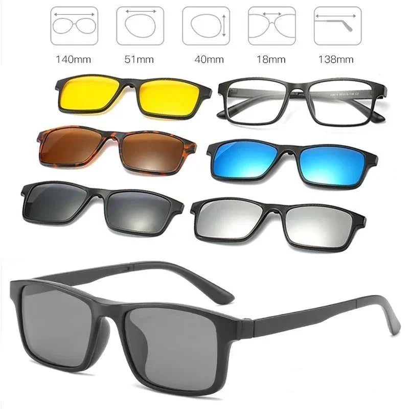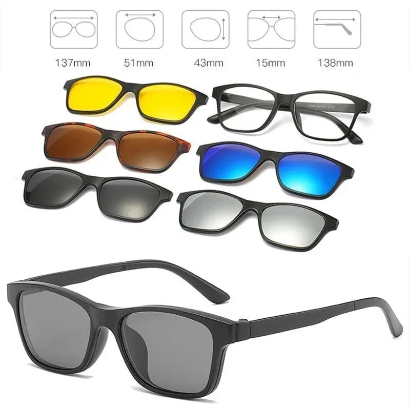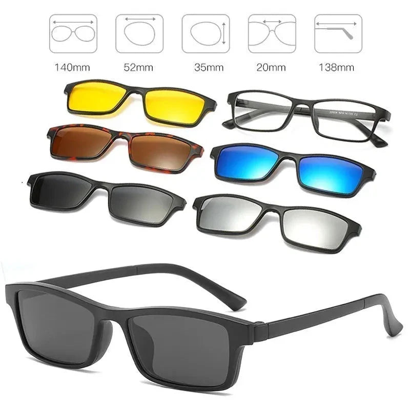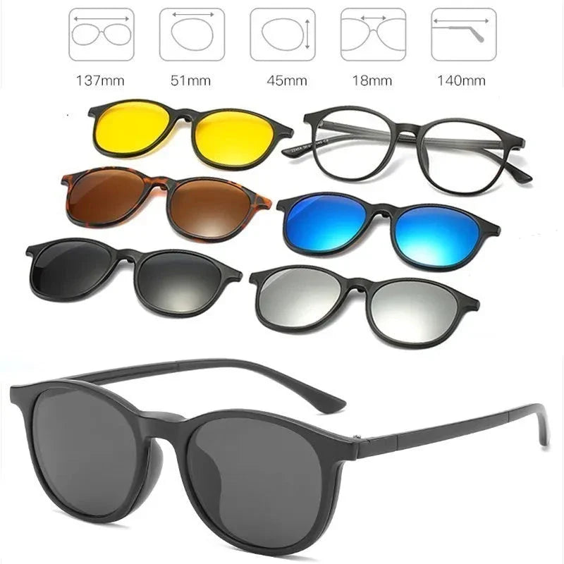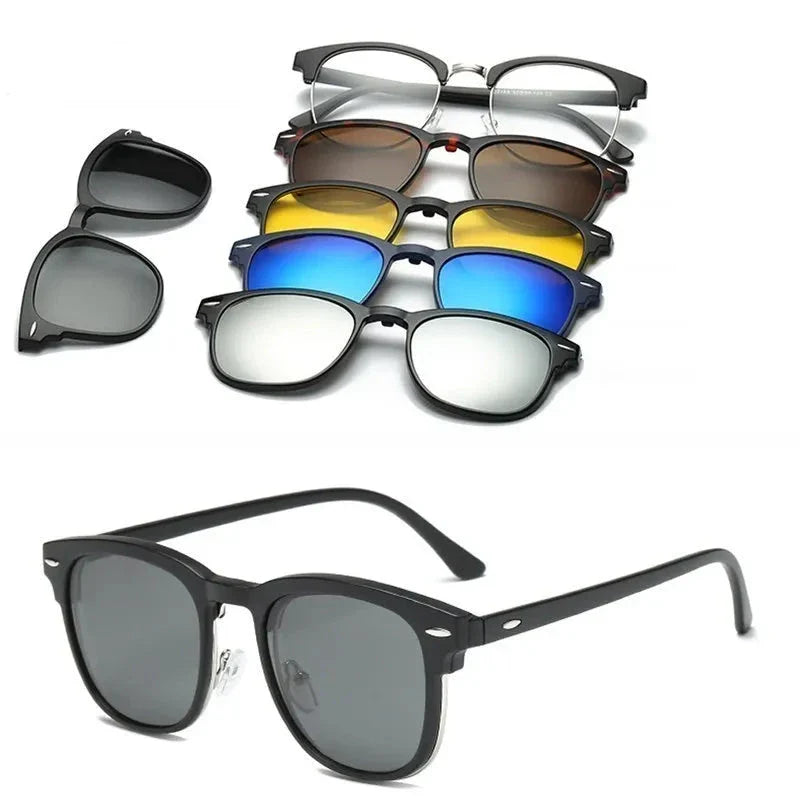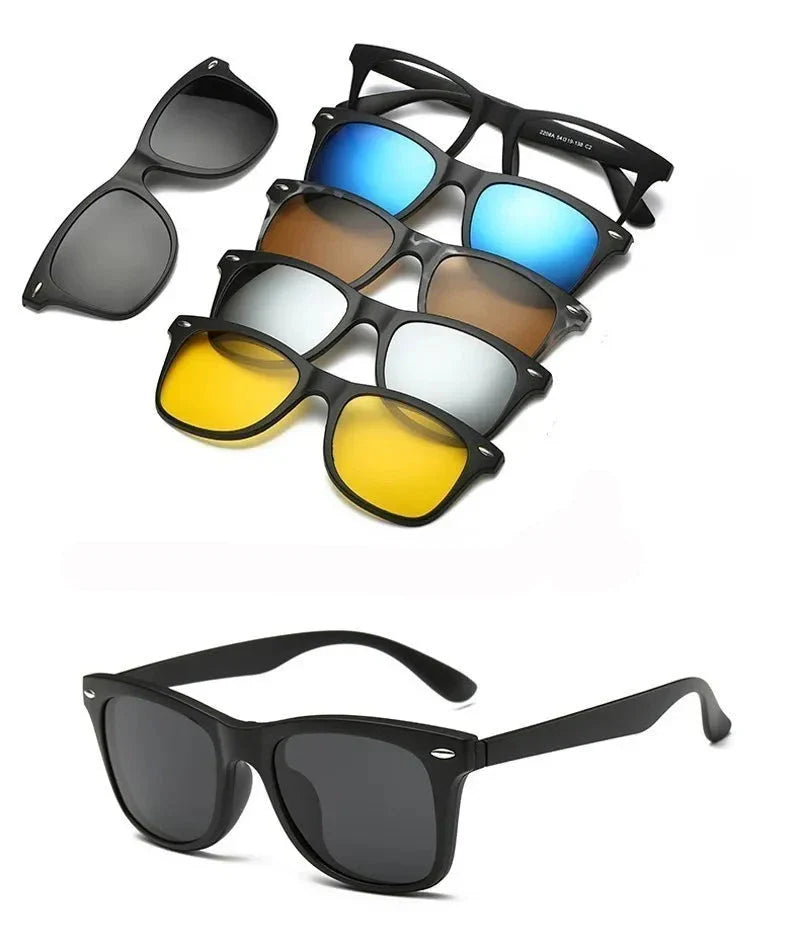 Com os Óculos de Sol Magnético 5 em 1, você terá sempre o modelo certo para cada ocasião, garantindo proteção, conforto e um visual moderno em qualquer momento.